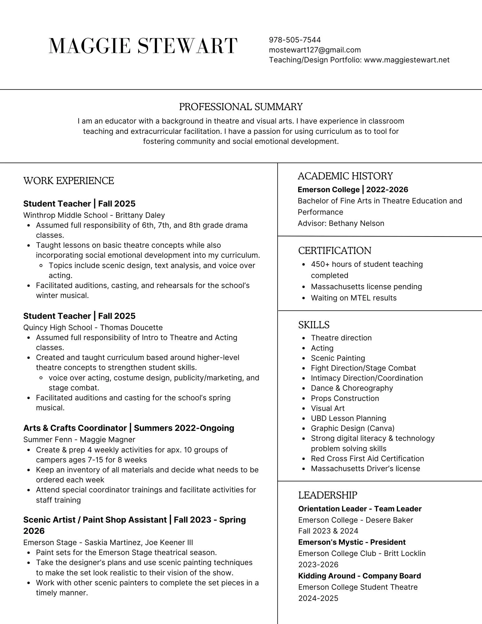 Teaching Resume