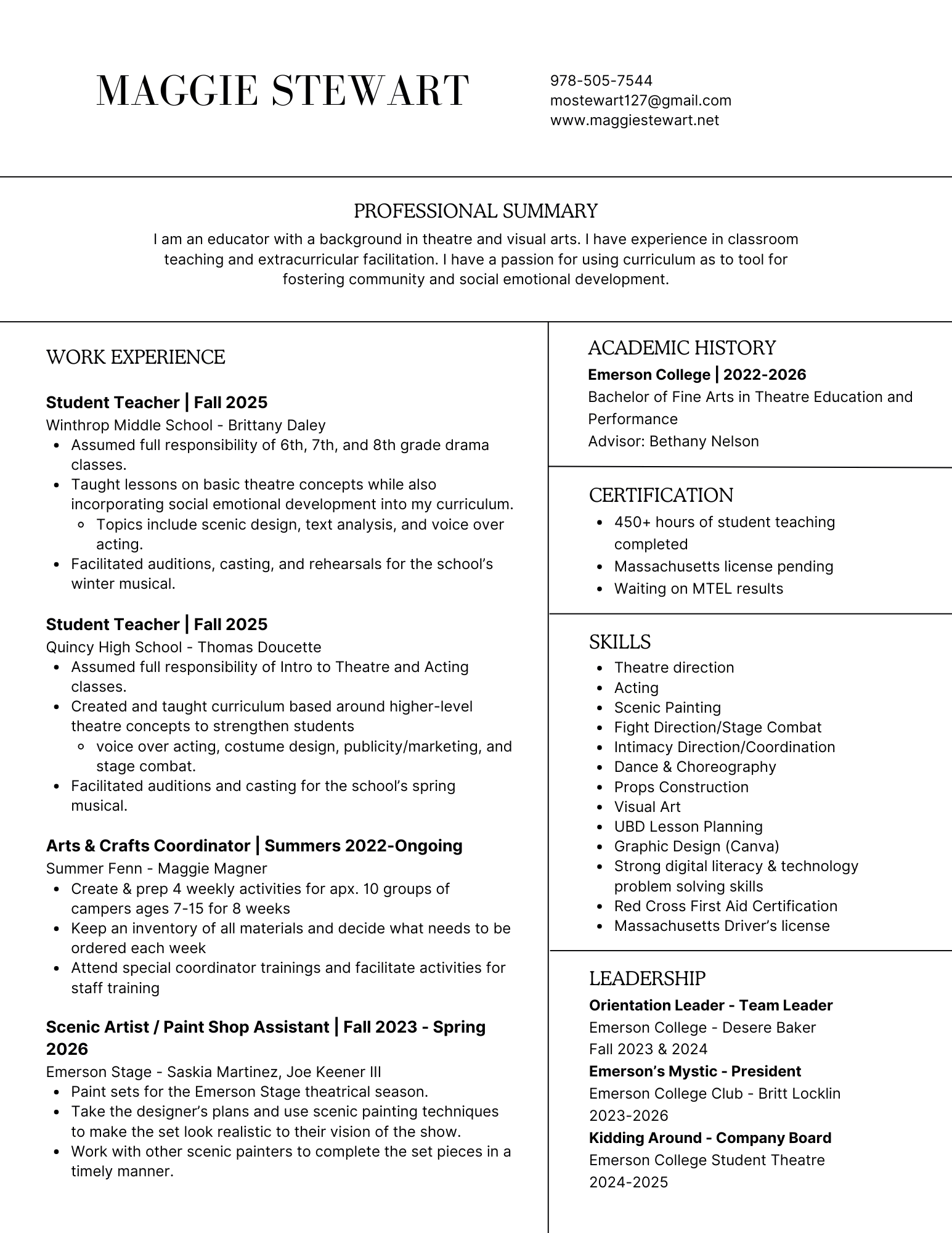 Associate Professor & Head of Undergraduate Theatre Education, Emerson College